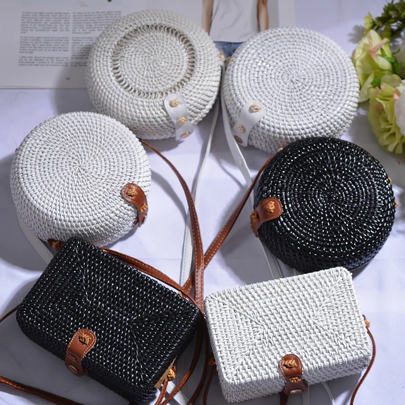 Buy 2023 Black White Round Straw Bags Women Summer Rattan Bag bags women Woven Beach Cross Body Bag Circle Bohemia Handbag Bali Box