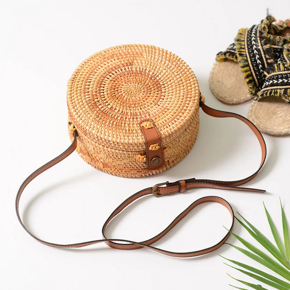 Buy SUNNY BEACH Summer Women Handmade Round Bamboo Handbags Rattan Bags Circle Box Bali Bohemian Beach Handbags Knitting Straw Bag